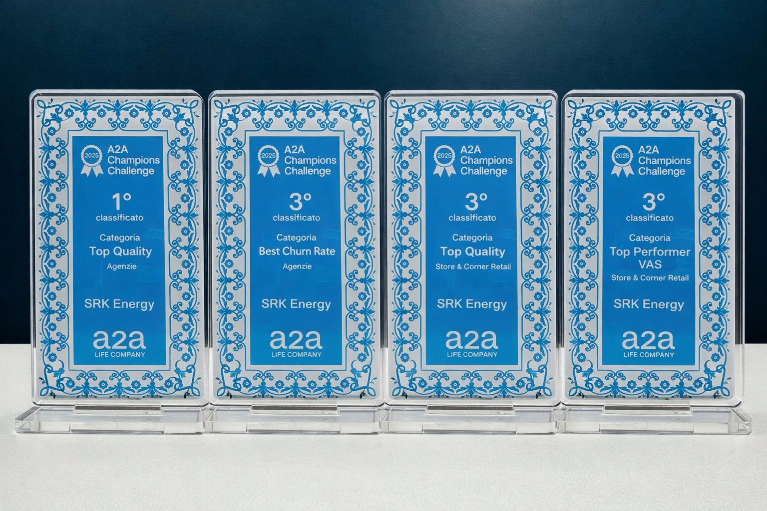 Nel corso della A2A Champions Challenge 2025, SRK Energy ha ottenuto importanti riconoscimenti che premiano la qualità del servizio, le performance commerciali e la fidelizzazione dei clienti. Un risultato che conferma l’impegno quotidiano nel fornire soluzioni affidabili e orientate all’efficienza energetica.